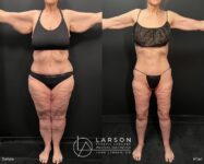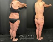 This 65-year-old patient had achieved massive weight loss but was left with significant excess skin and persistent lipedema affecting multiple areas of her body, causing ongoing discomfort and limiting her ability to fully enjoy her weight loss success.