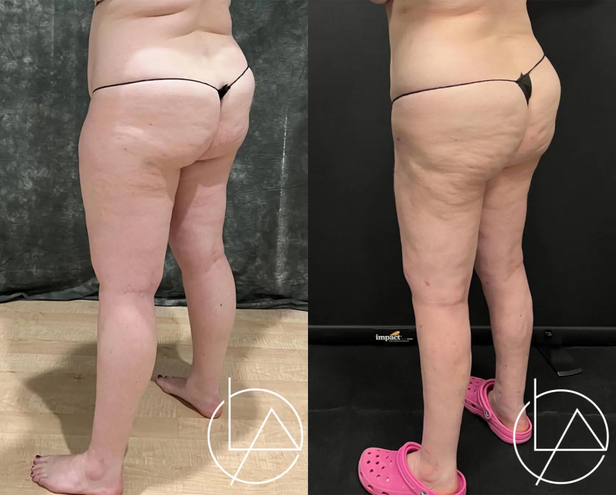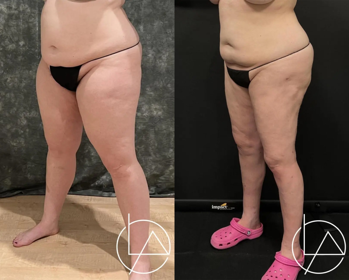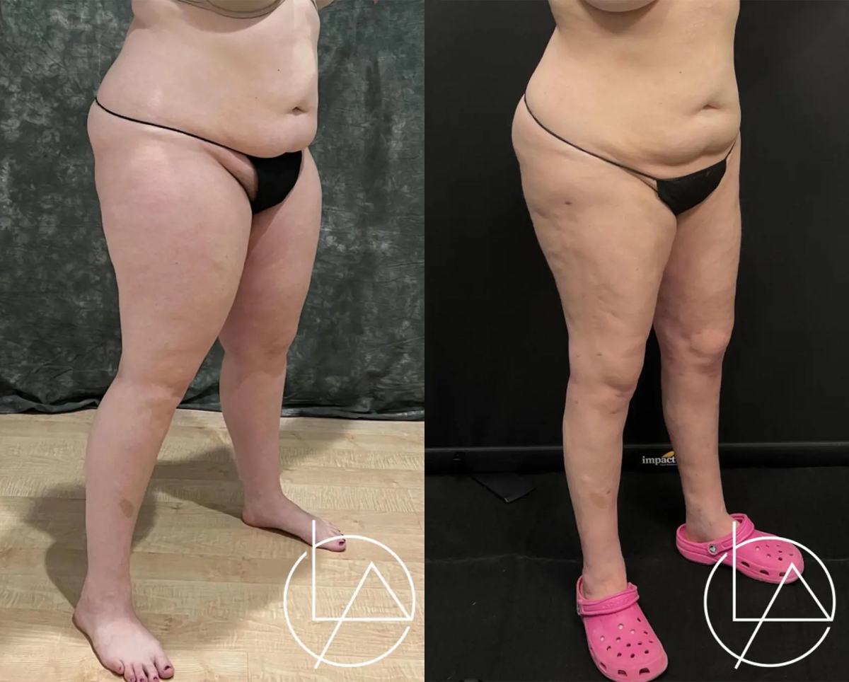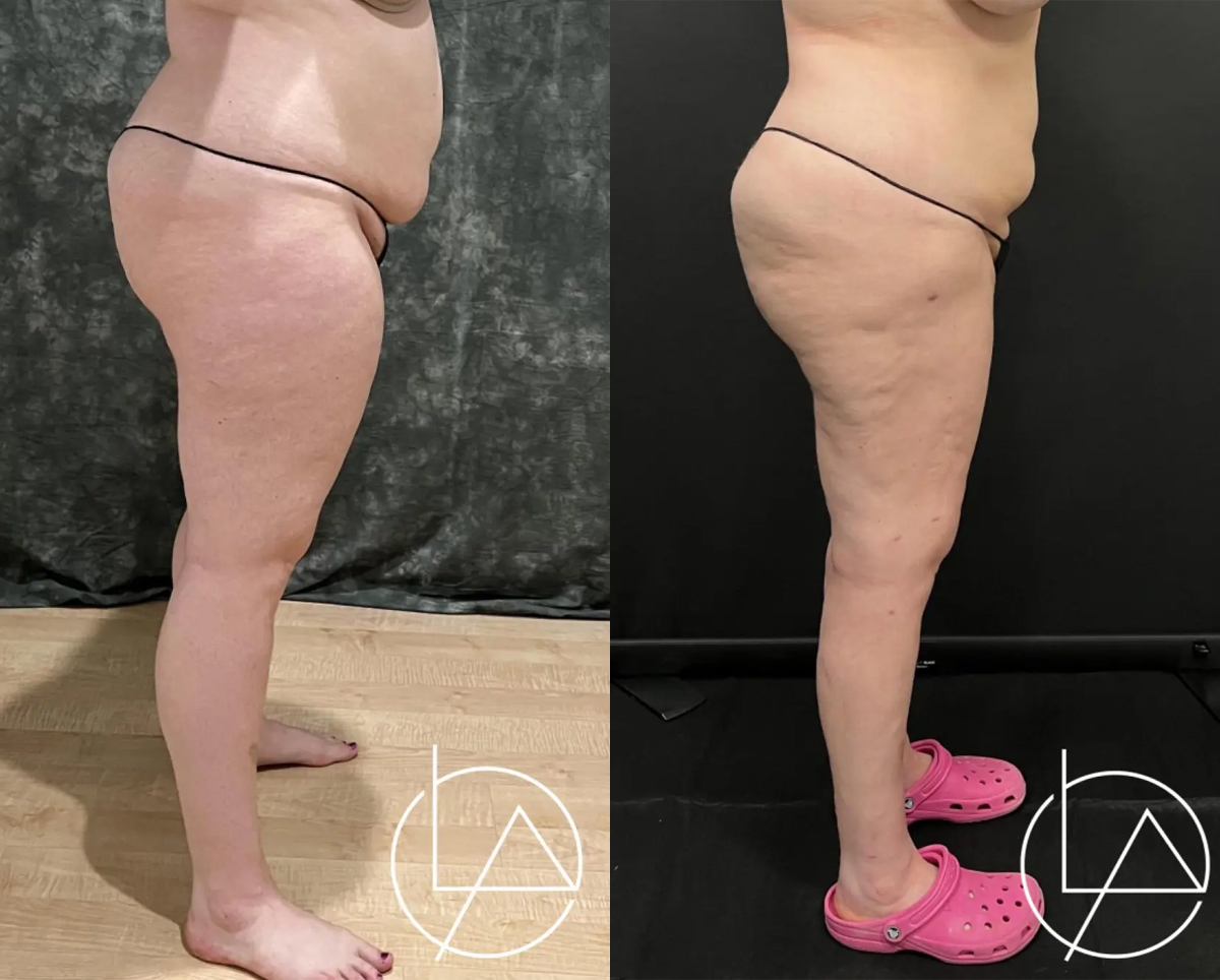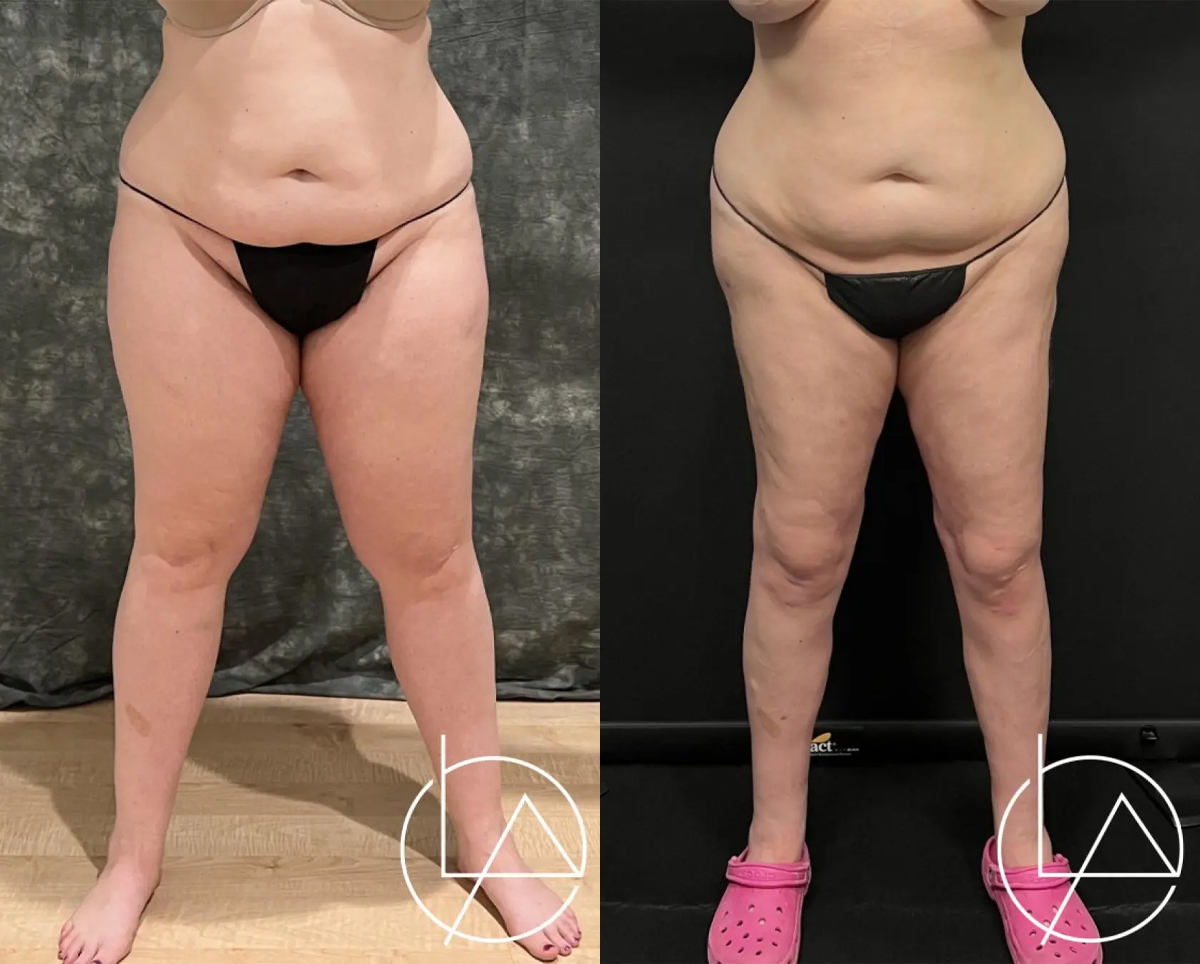 This lovely patient was diagnosed with lipedema and presented seeking surgical treatment. She underwent her first stage lipedema operation, which included power-assisted liposuction of the lower extremities. 10 Liters of lipoaspirate were removed during the case. This can be difficult to visualize, but if you imagine 5 large two-liter Coke bottles, it becomes easier. She spent the night in the hospital for observation as planned, given the high volume of liposuction performed. Her recovery went smoothly, and she recently underwent her second stage, which included liposuction of the arms as well as arm lift, as well as liposuction of the abdomen. Photos of this second stage will follow.