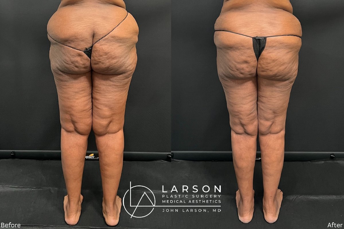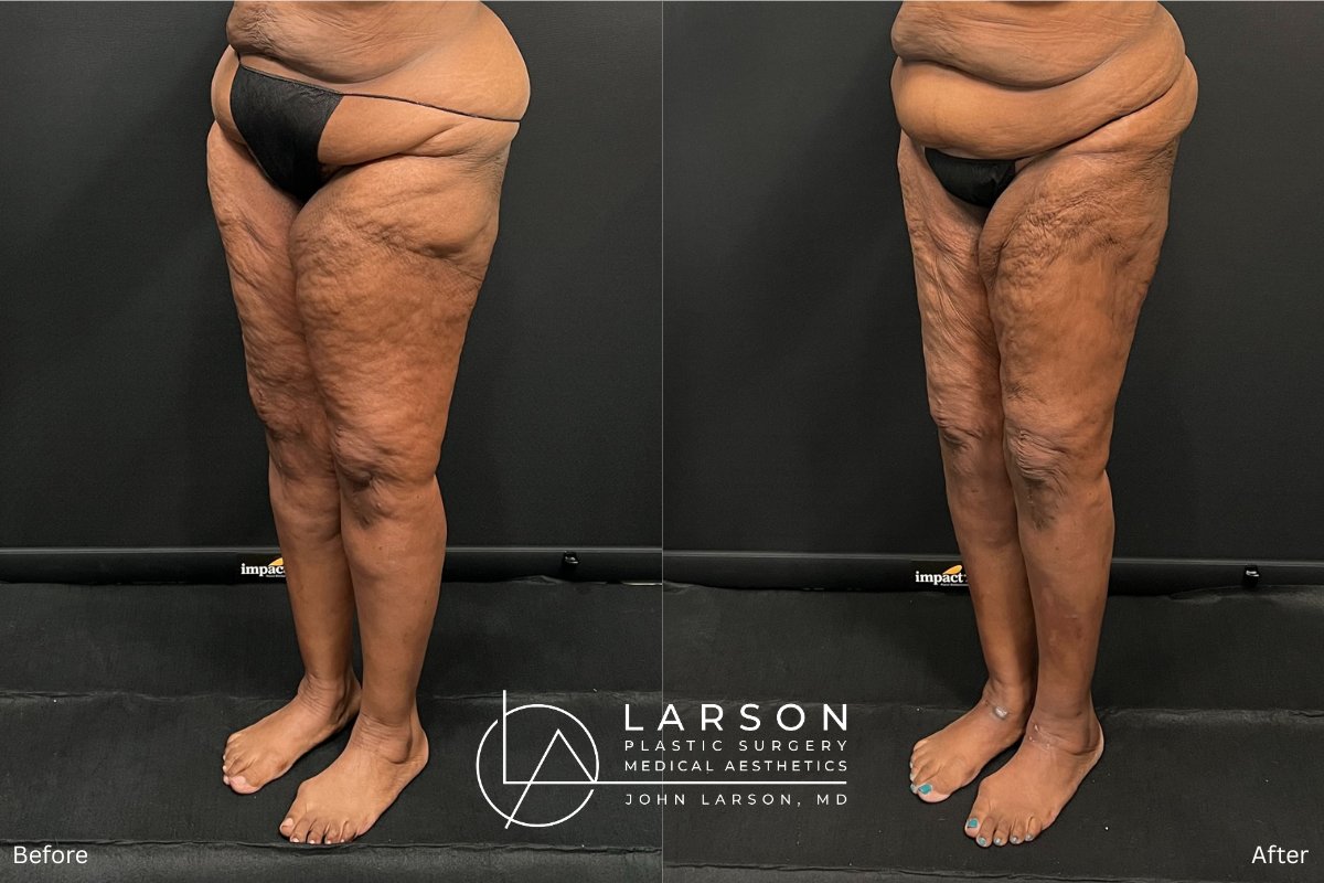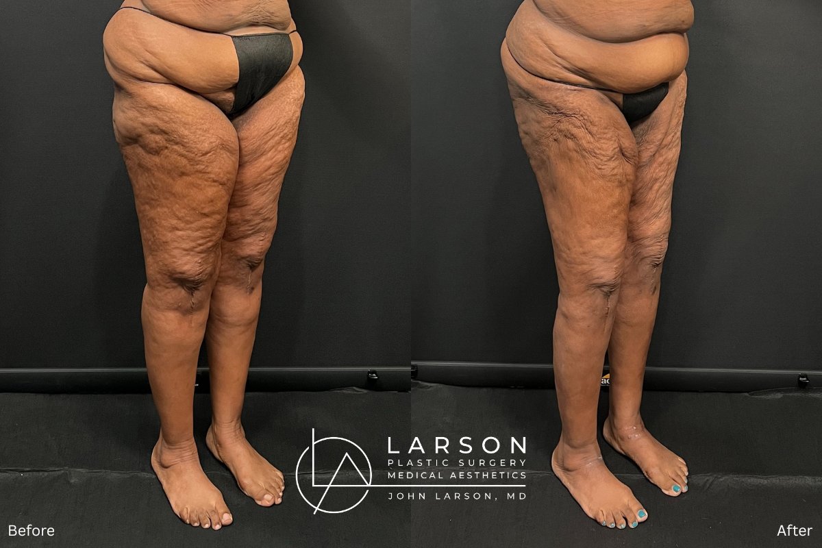 - Advanced lipedema involving legs, hips, buttocks, arms, and abdomen