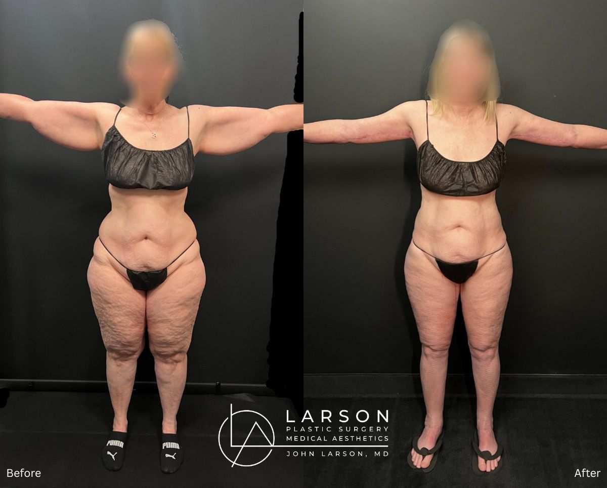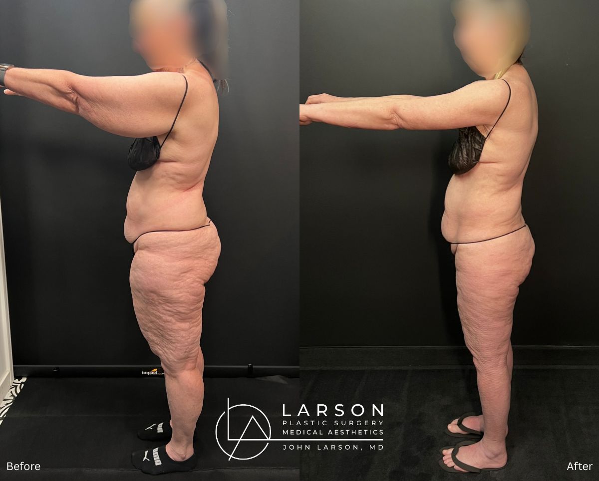 We completed a carefully planned, multi-stage approach using liposuction and skin-tightening procedures: