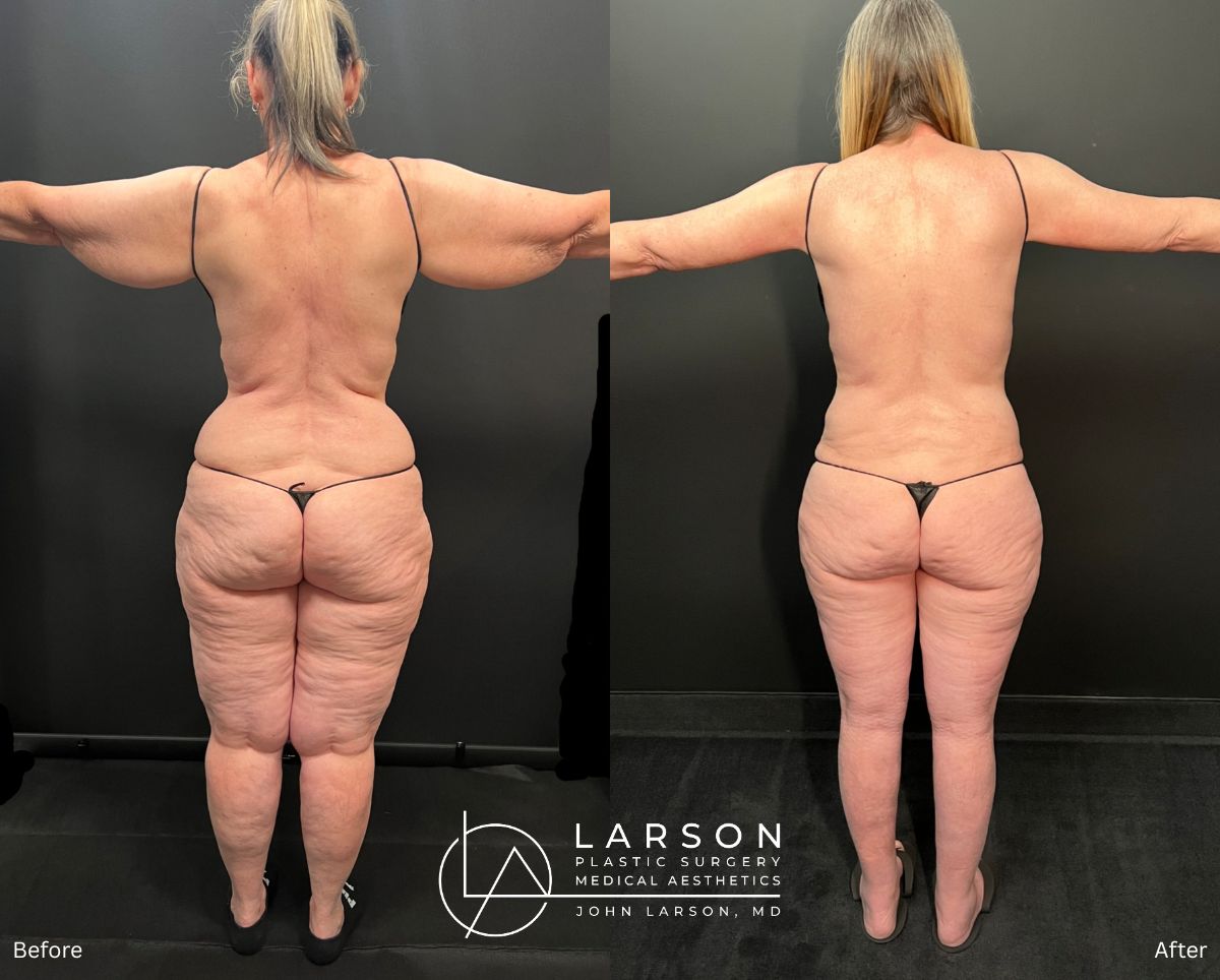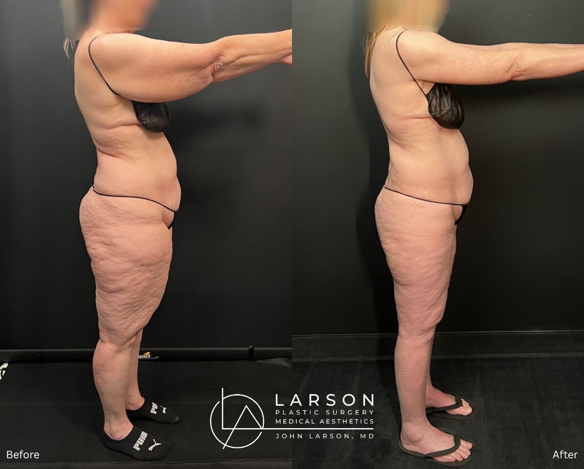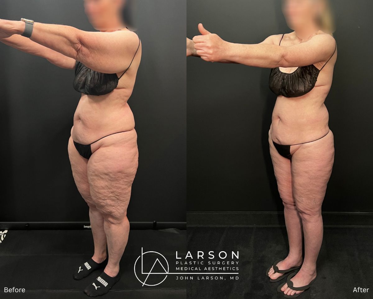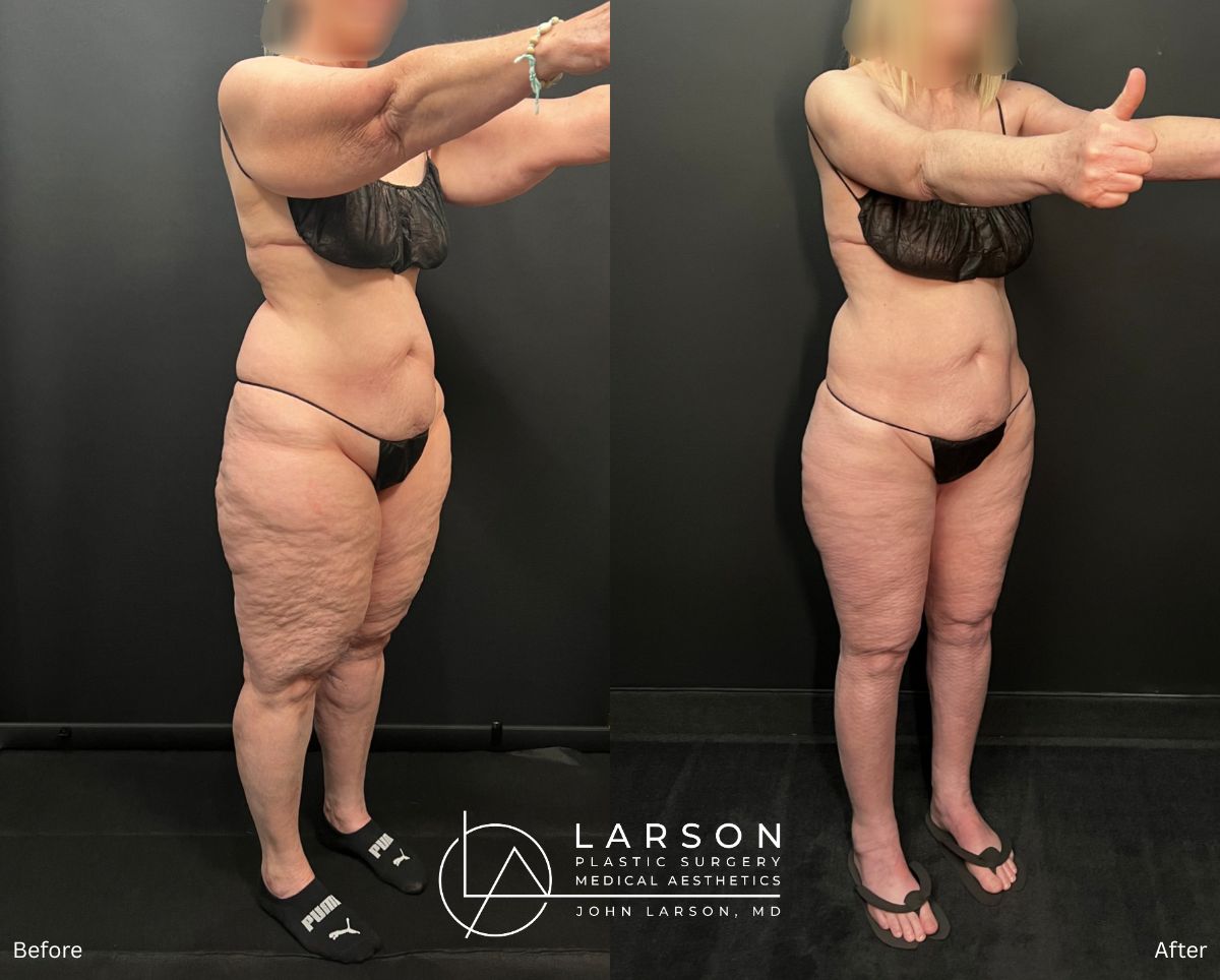 This active 62-year-old woman had been struggling with advanced Stage 2 lipedema that affected her legs, hips, buttocks, arms, and abdomen.